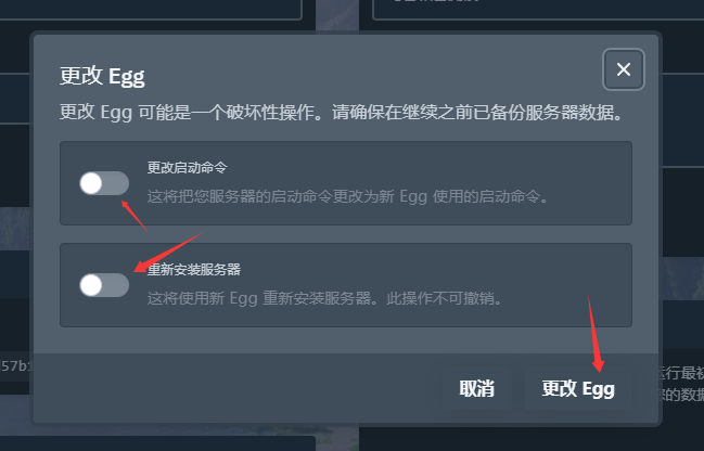 请务必勾选确认框,然后点击“更改 EGG”以完成操作。