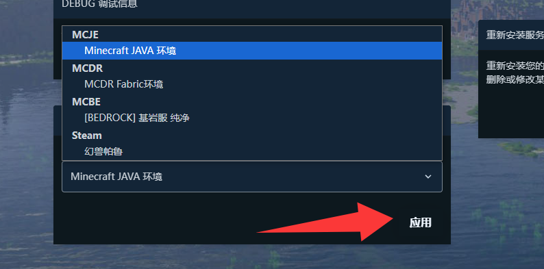 在弹出的列表中选择你需要切换的游戏环境,点击“应用”。确认并切换