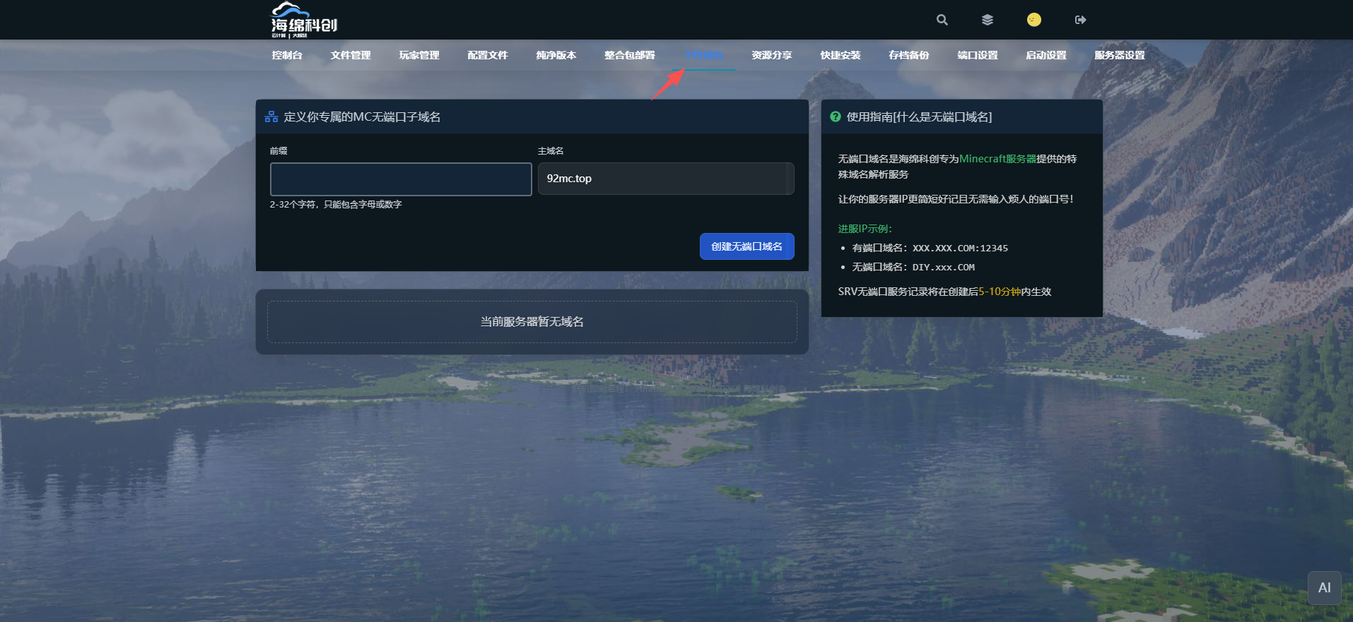 填写想要的前缀后,点击创建无端口域名
