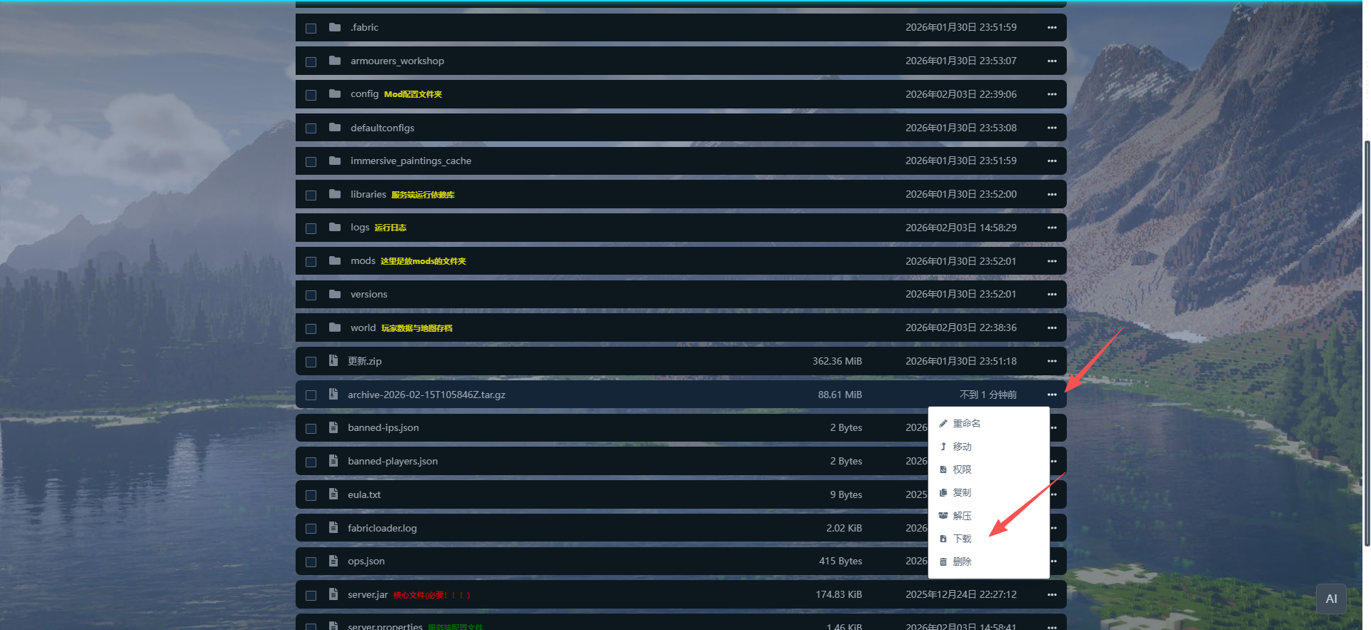 在此之前,如果您是付费节点,我们提供了快捷备份方式 请见本文档内⚔️功能 | 服务器备份