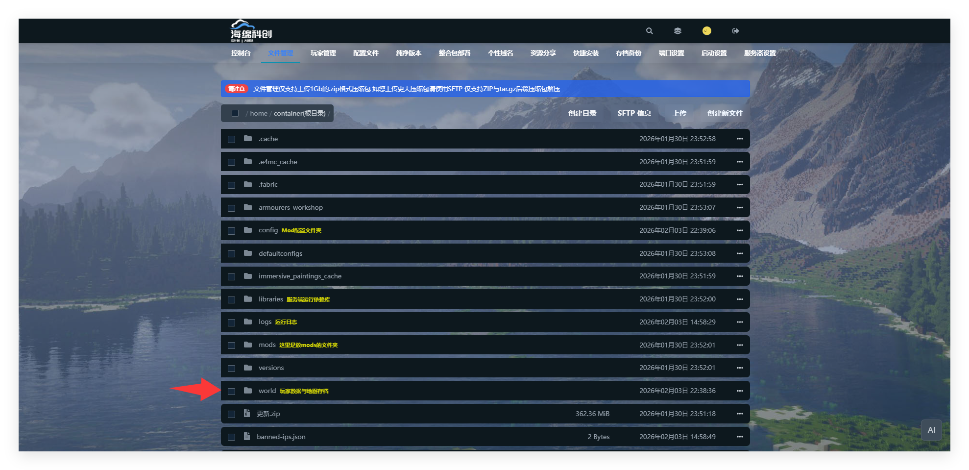 📁 在你的服务器文件内找到 World (玩家数据与地图存档)