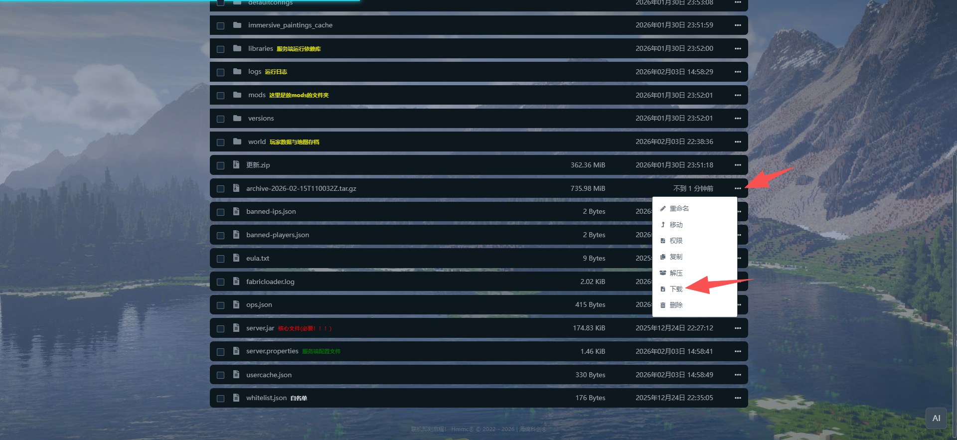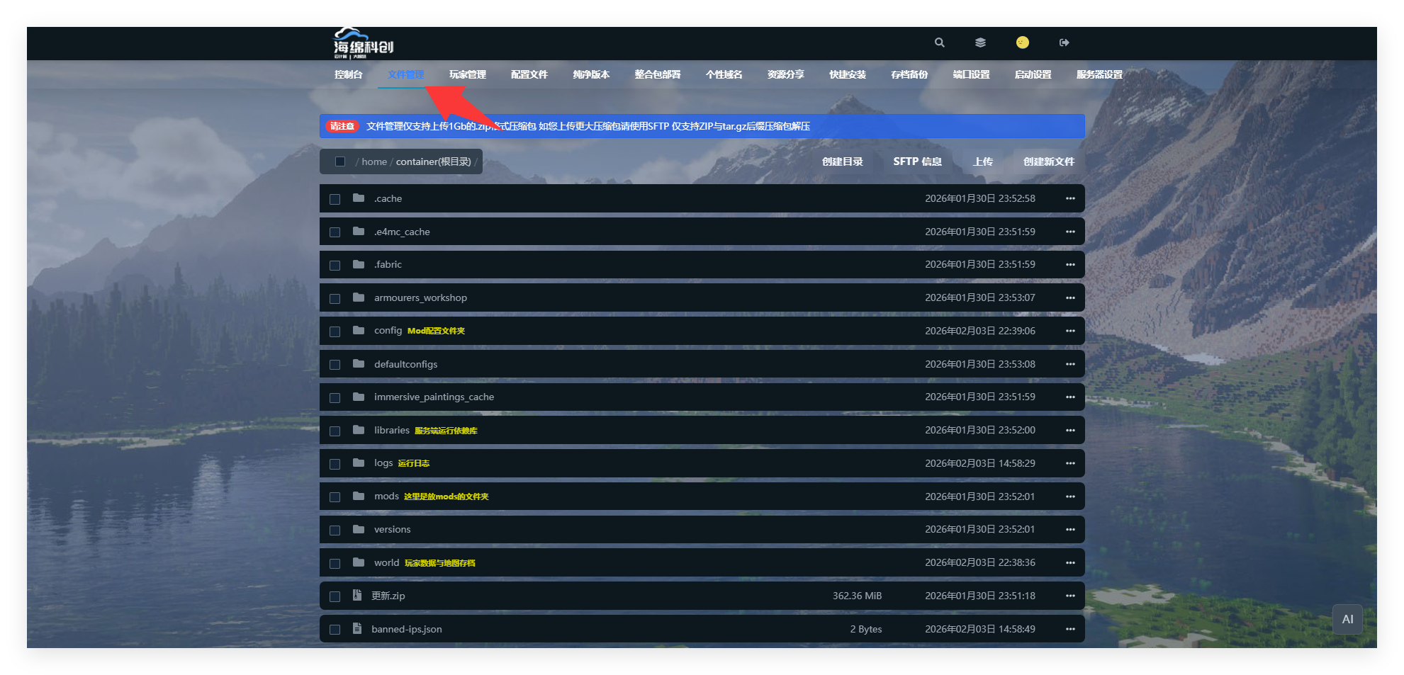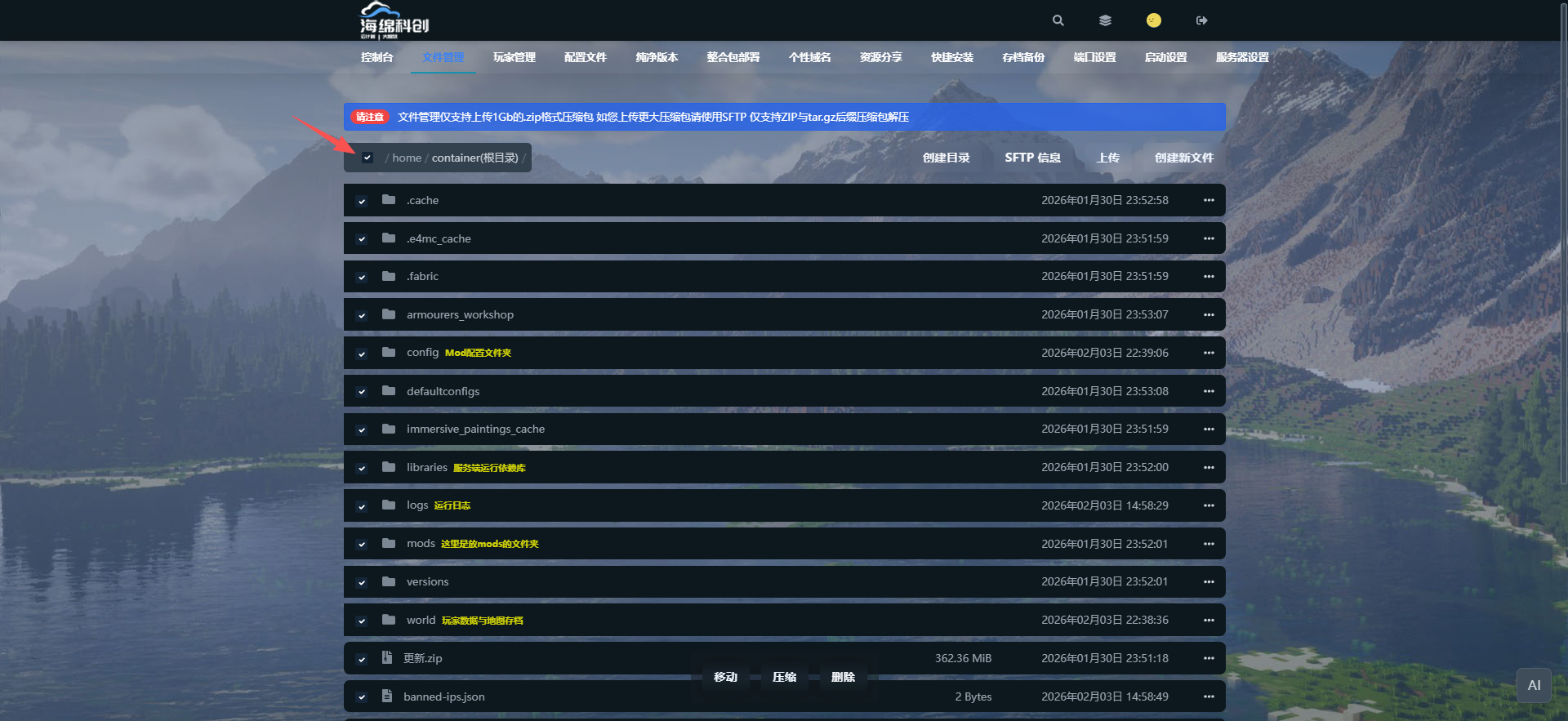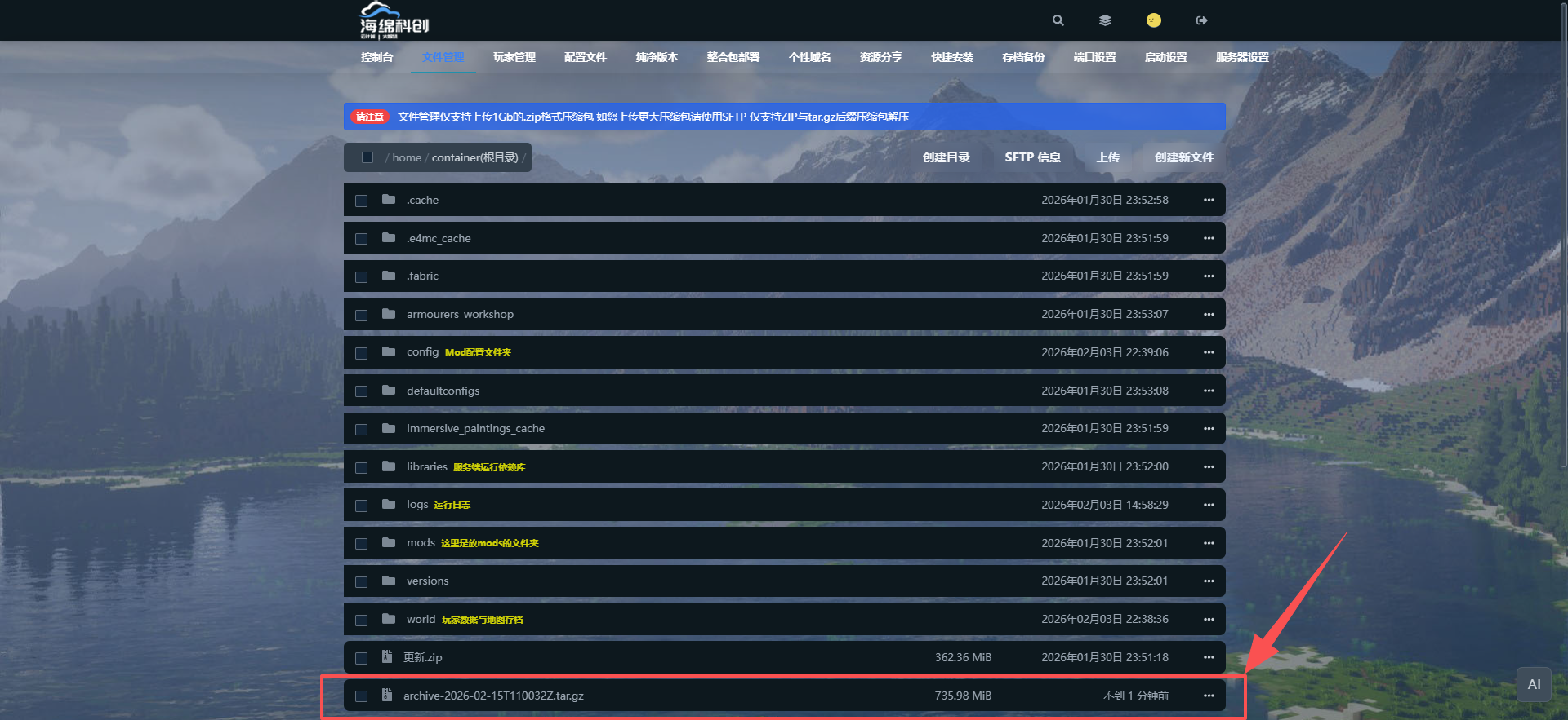 由于免费节点硬盘使用状况,免费节点未送快捷备份次数,可使用该方法备份整体服务端,如需备份单一服务器存档,请见本文档目录内🎮高级 | 手动备份服务器存档